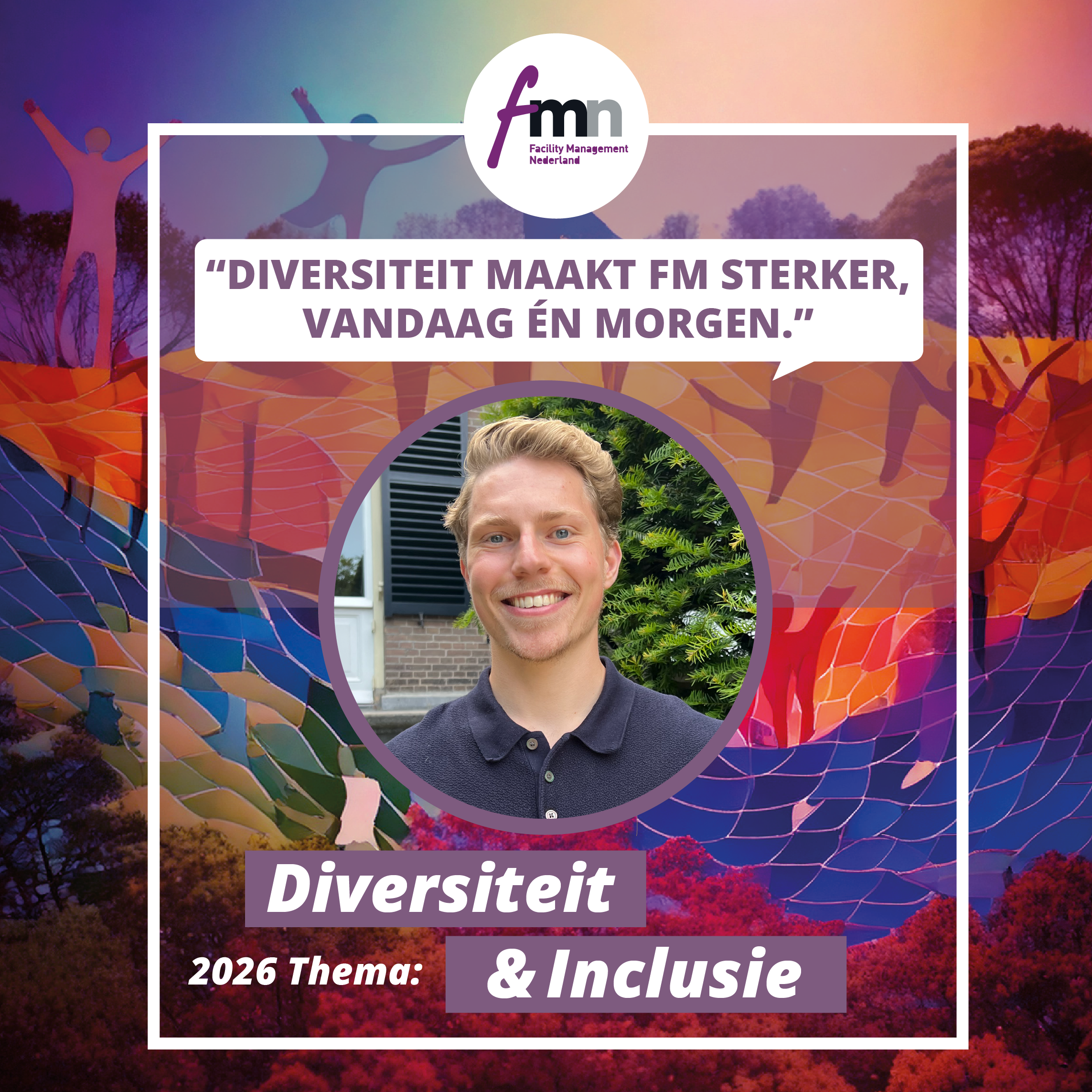 Ik schrijf niets nieuws. We weten het. Toch is het in de realiteit niet altijd zo divers. Daarom staat FMN (Young) dit jaar bewust stil bij Diversiteit & Inclusie. Met FMN Young willen we de brug slaan tussen jong en oud in onze branche. We geloven in de kracht van ervaring én frisse ideeën. De senior die het speelveld kent en de junior die nieuwe vragen stelt. Die combinatie is goud waard, vandaag én morgen.