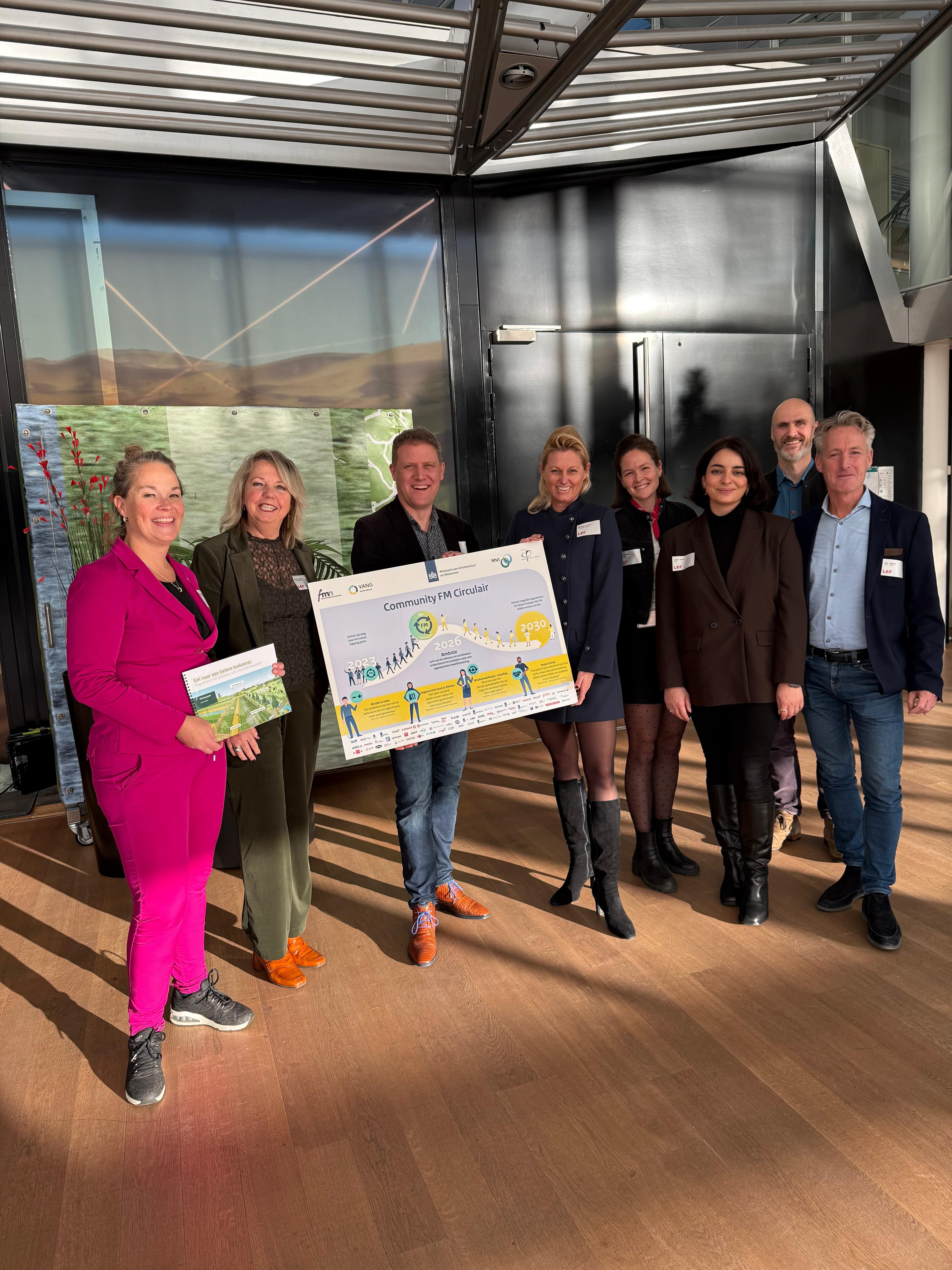 Op 25 november ontvingen Michel Tobé en Gonjo Beuken namens FMN het actieplan FM Circulair uit handen van Klaas van der Sterren (RWS Leefomgeving). Vertegenwoordigers van diverse organisaties uit het facilitaire werkveld waren hierbij aanwezig.