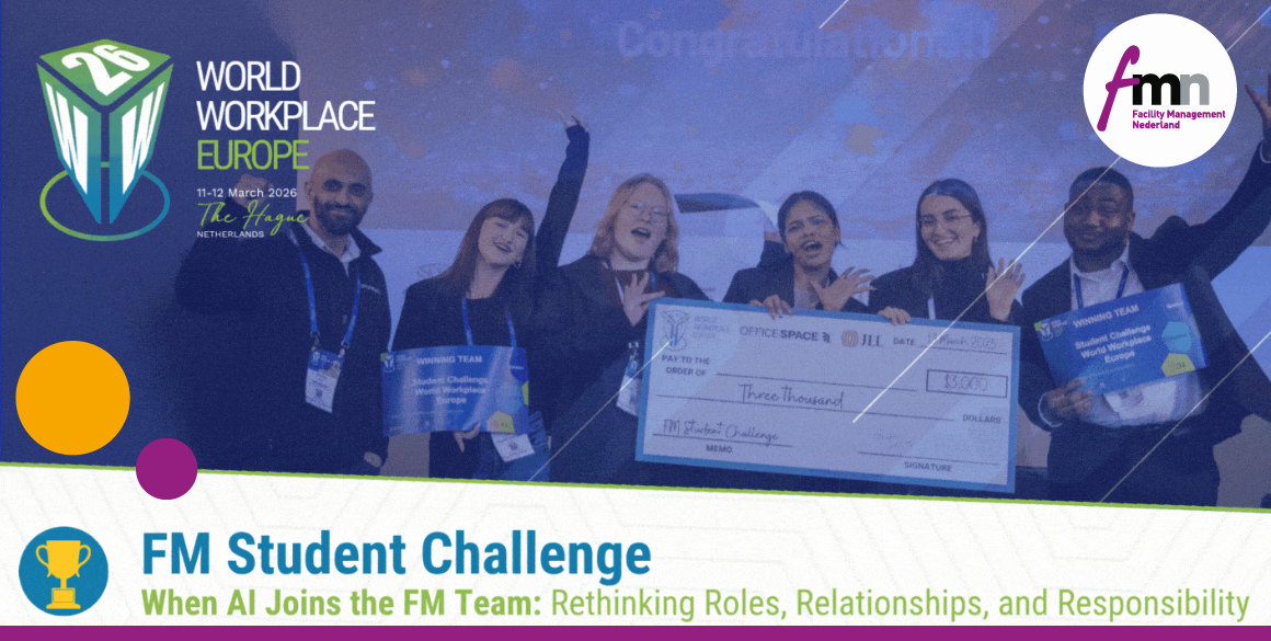 Wat gebeurt er wanneer Artificial Intelligence deel gaat uitmaken van het Facility Management-team? Is het een collega, een manager, of iets totaal nieuws? Ben jij klaar om je vaardigheden, creativiteit en carrière naar een hoger niveau te brengen? Dan is dit jouw moment. IFMA, samen met EuroFM en FMN, nodigt je uit om deel te nemen aan de World Workplace Europe 2026 FM Student Challenge. Dit is jouw kans om te schitteren voor leiders uit de sector, je netwerk uit te breiden en een van de meest actuele thema’s in FM te verkennen: When AI Joins the FM Team.