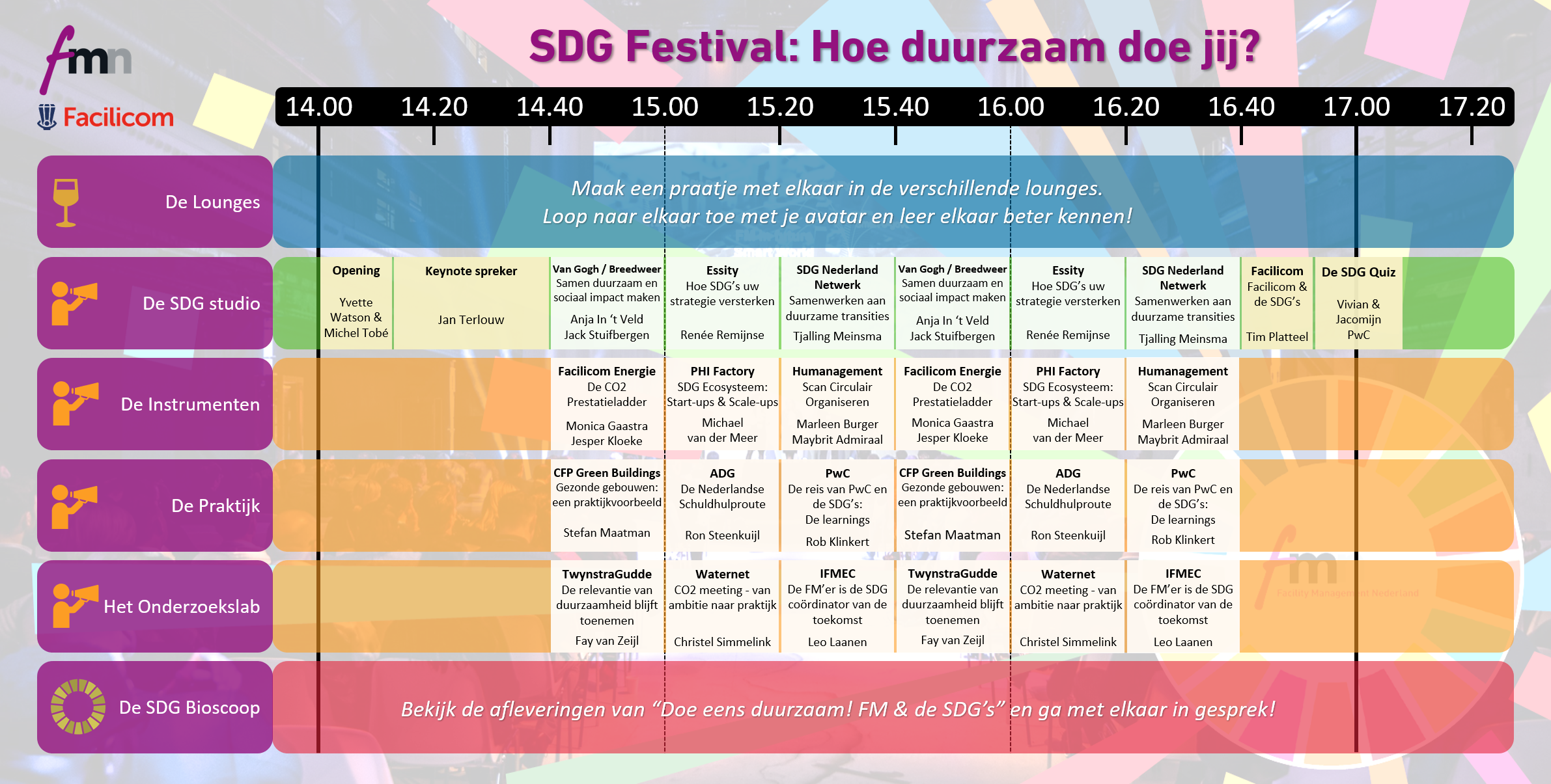 De boodschap van Jan Terlouw is optimistisch: het is niet te laat om iets te doen aan het wereldwijde probleem dat op ons afstevent. Met onze keuzes en acties kunnen we bijdragen aan het behalen van de SDG’s, hier en in het buitenland. Samen kunnen we uitdagingen als armoede, onderwijs en de klimaatcrisis aanpakken. Ook jij kunt als FM’er bijdragen aan een mooiere en eerlijkere wereld. Daarom organiseren FMN en Facilicom dit SDG Festival. Om jou praktische handvatten, instrumenten en praktijkvoorbeelden te geven zodat je de SDG’s kunt implementeren in jouw organisatie. Want: een betere wereld begint bij jezelf.